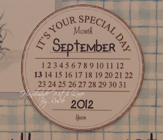 I printed another of the circular date sentiments and changed it to black to show month, birthday and this year.